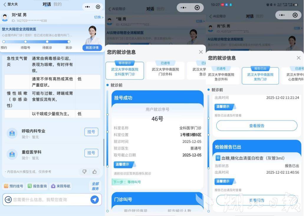 湖北日报(记者戴文辉 通讯员邹子功 通讯员钟一岭)很多人的手机上都有医院应用、小程序。但如果附近的医院已经满员或者病情不适合,就需要在各个医院之间来回申请,比较耗时。 12月6日,在湖北省卫健委的全面领导下,湖北省大数据集团与湖北省统一数字卫生官“褚医生”共同研发并上线了人工智能云。通过这个门户网站,可以注册15个医院账户,未来将覆盖该州所有三级医院。 “Dr. Chew”操作界面。 (采访组供图) 据介绍,“楚医生”与湖北省统一预约挂号平台深度融合,实现数字源资源整合、医疗资源统一发送。全省各级机构。患者无需在不同的医院应用程序或小程序之间反复切换。通过“褚医生”门户您可以轻松预约省内不同部门、不同城市的预约。 “褚医生”还可以根据您的症状,为您介绍优质科室和医生。具体流程如下。从微信小程序“健康湖北公共服务平台”进入“褚医生”页面。在解释症状后,“褚医生”精准识别并优化诊断分类,结合当地医院资源,智能推荐最合适的科室和医生。注册成功后,“楚医生”将能够实时发送候诊提醒、检测项目指南等信息,支持查看在线报告和跟踪进度,减少患者在医院的时间。经协商后也扩大了此项服务。之后检查报告出具后,“褚医生”可以提供专业的报告解读和药学服务指导,必要时还可以设置用药提醒,打造健康管理闭环。 “Dr. Chew”操作界面。 (报道组供图)目前,“博士”已联网,生成试点机构全流程的智能抵押信息。按照计划,到2026年,“博士”将实现试点机构全流程智能化连带信息。 “楚”将与省内各三级医院全面对接,为群众提供便捷、智能、优质的配套服务。